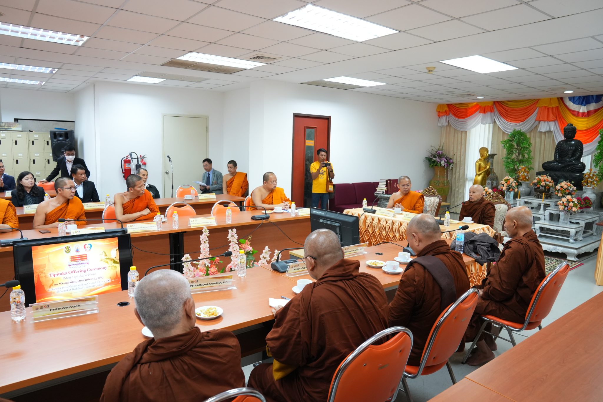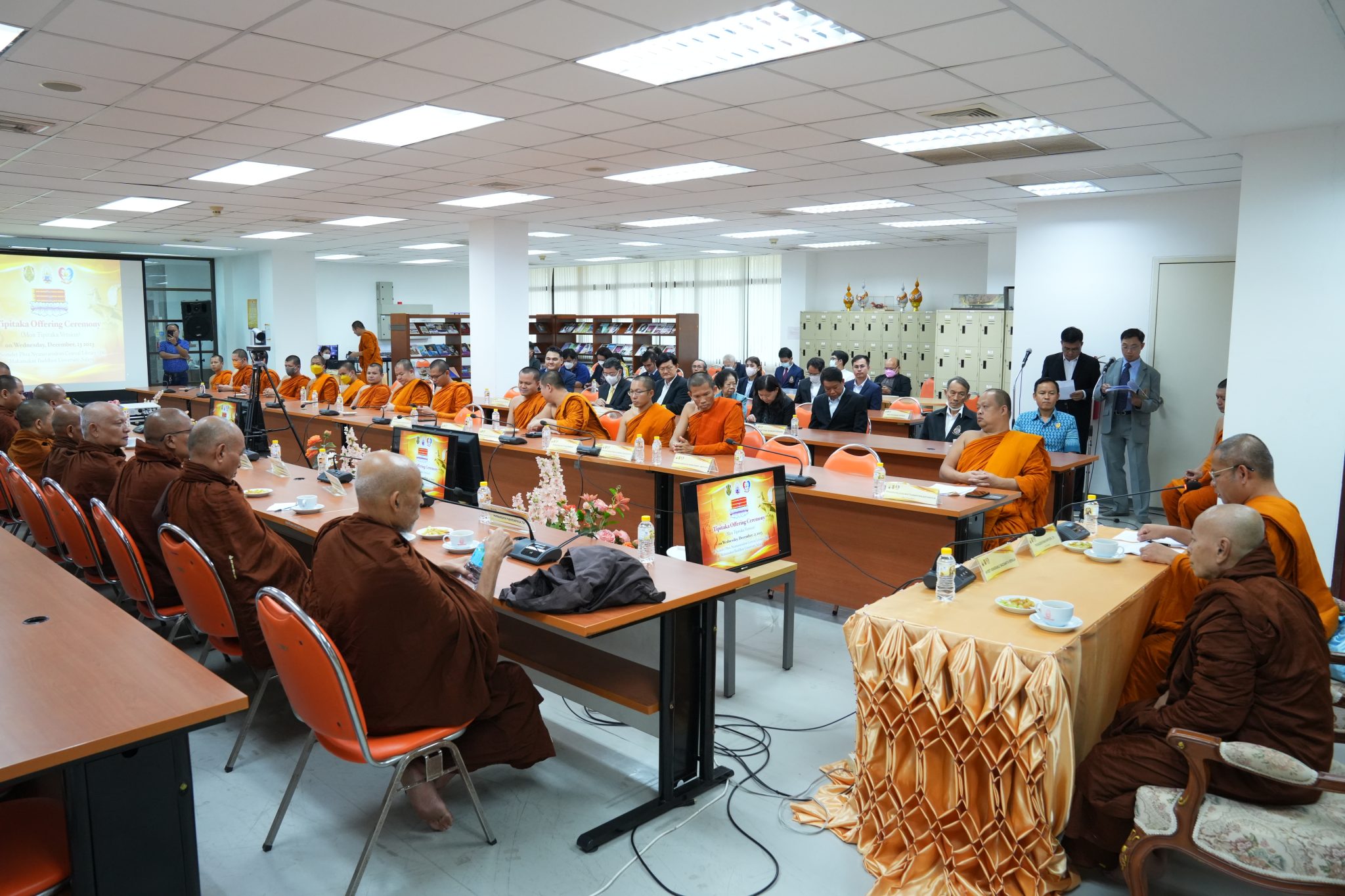 วันพุธ ที่ ๑๓ เดือนธันวาคม พ.ศ. ๒๕๖๖ พระเทพวัชรเมธี, ผศ.ดร. อธิการบดี มหาวิทยาลัยมหามกุฏราชวิทยาลัย ได้มอบหมายให้ พระศรีวินยาภรณ์, ดร. รองอธิการบดี เป็นประธานในการรับถวายพระไตรปิฎก ฉบับภาษามอญ โดยมี Most Venerable Baddanta Vepulla รองประธานคณะสงฆ์มหาเย็น (รามัญธรรมยุต) เป็นผู้แทนคณะสงฆ์ในการถวาย ณ ห้องประชุม อาคารสมเด็จพระญาณวโรดม B.6